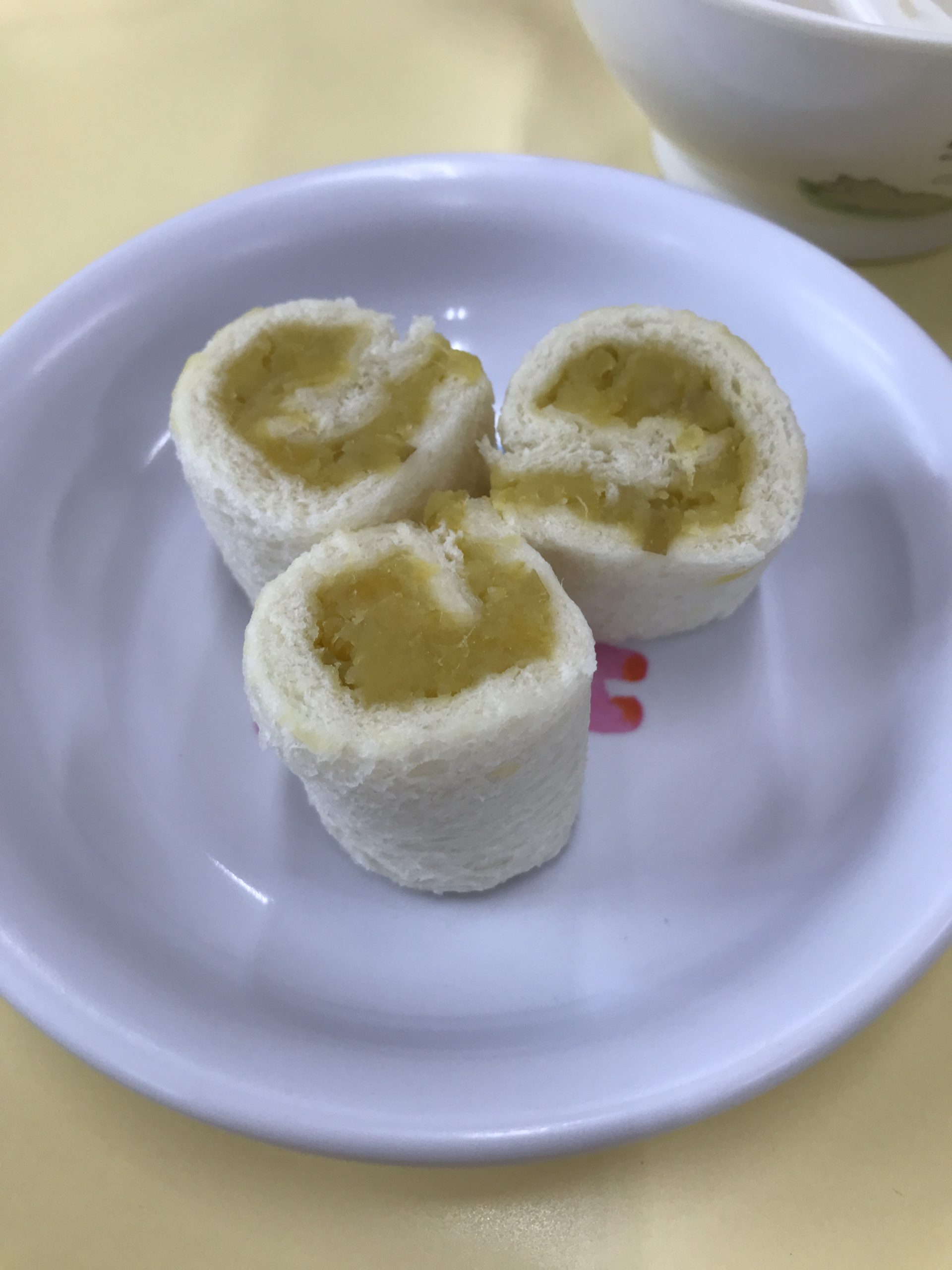 りんごさつま芋ペーストをサンドイッチ用食パンに塗ってくるくる♪