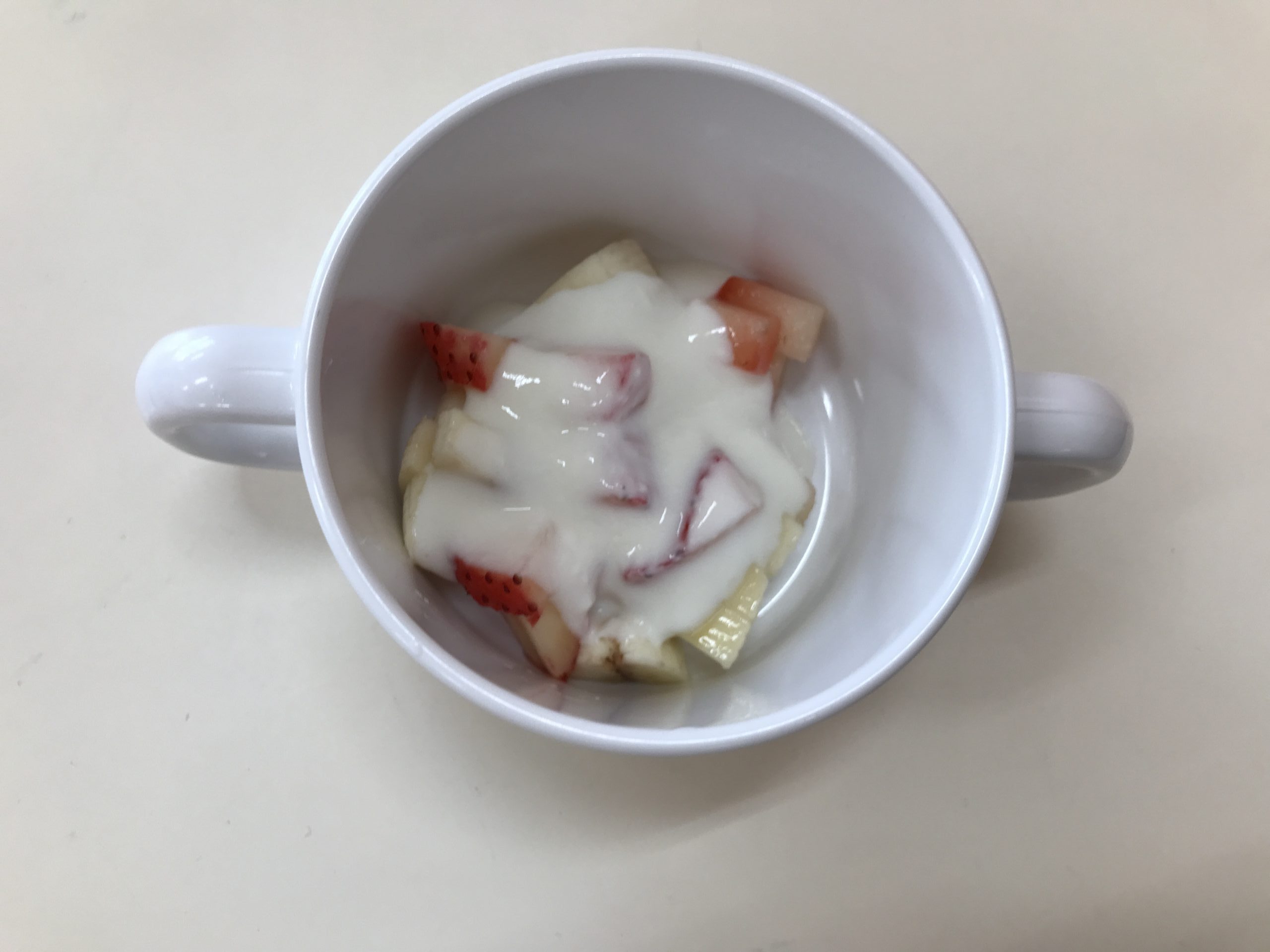 デザートはバナナとイチゴのフルーツヨーグルトでした🍓🍌